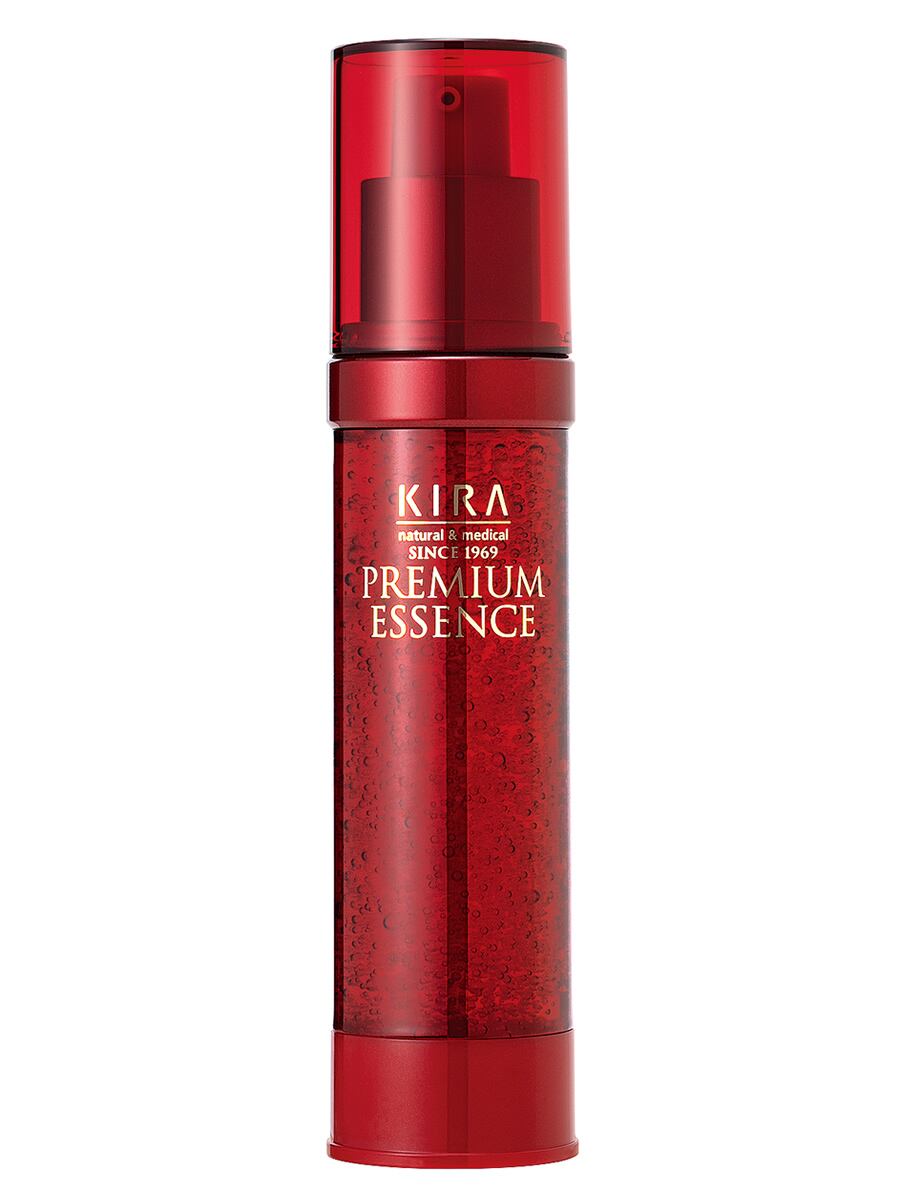 リンゴ幹細胞増殖エキス、レスベラトロール、エクトインの配合により、肌にハリとうるおいを与え、若く生き生きとしたお肌を保つ手助けをしてくれるのが、キラ化粧品の新世代美容液「プレミアムエッセンス」です。