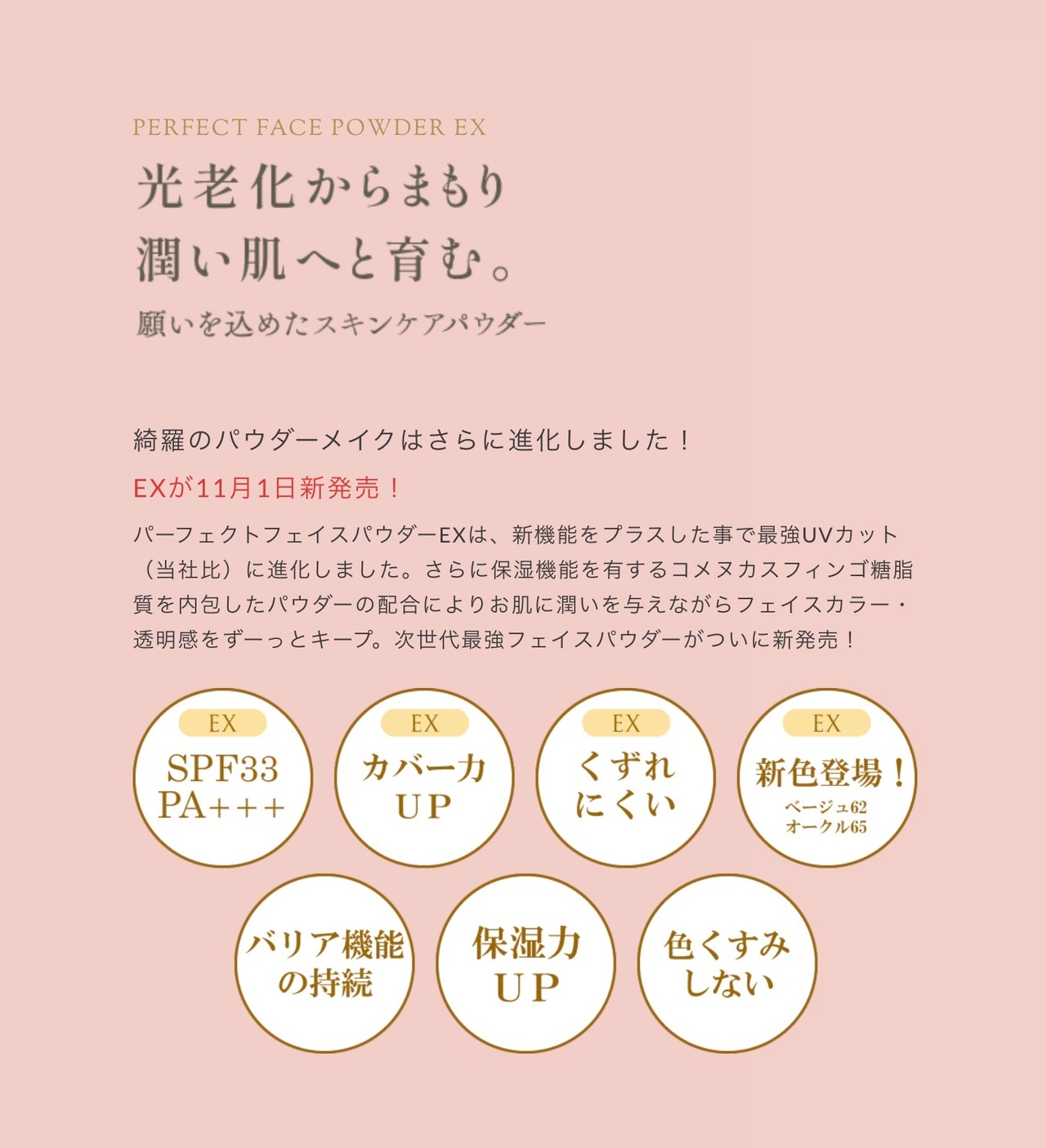 撥水・撥油コートしたパウダーの配合により、つけた時の透明な仕上がり感をずっとキープ。紫外線から肌を守り、日やけによるシミ、ソバカスを防ぎます。