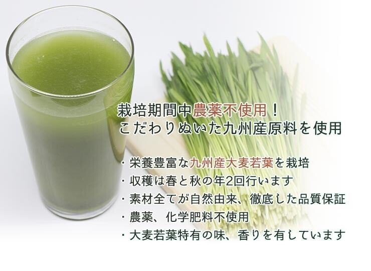 栽培期間中農薬不使用の九州産大麦若葉100%の粉末です。