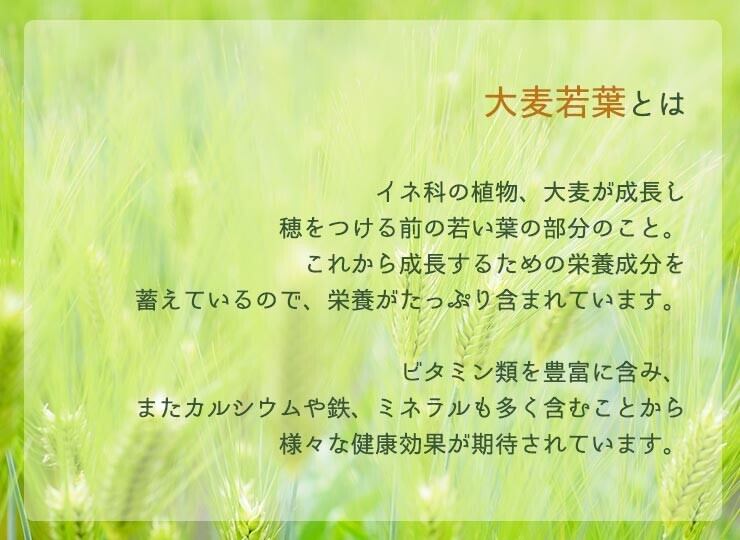 イネ科の植物、大麦が成長し穂をつける前の若い葉の部分を大麦若葉と言います。